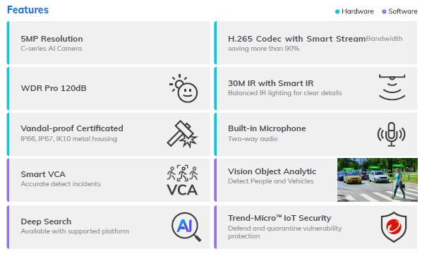 VIVOTEK Smart VCA offers precise object tracking, detects specified abnormal behavior, and provides detailed video analytics for targeted monitoring and real-time alarm.